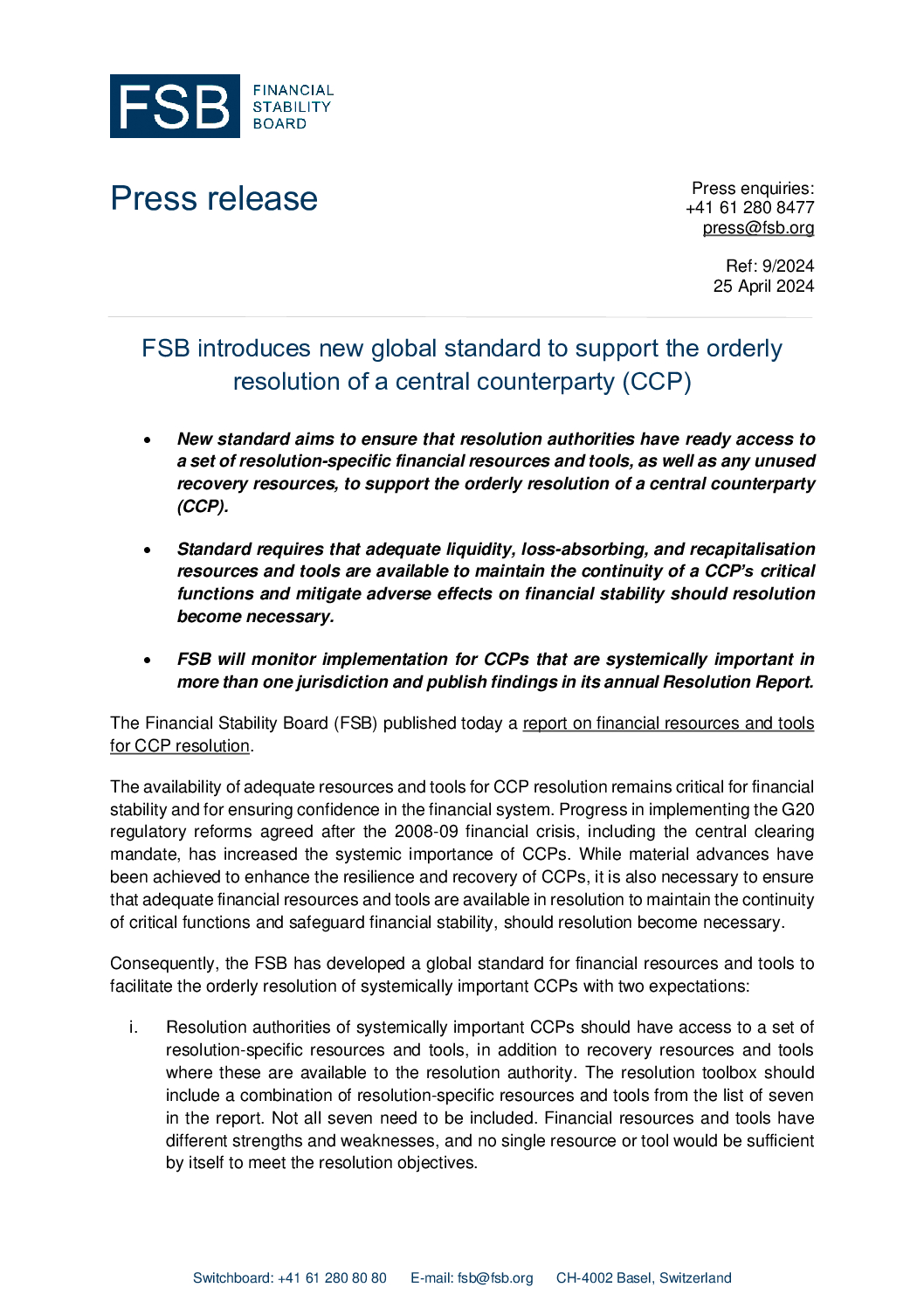 Effective resolution regimes for systemically important central counterparties (CCPs) and the availability of adequate resources and tools for CCP resolution remain critical for financial stability and ensuring confidence in the financial system.