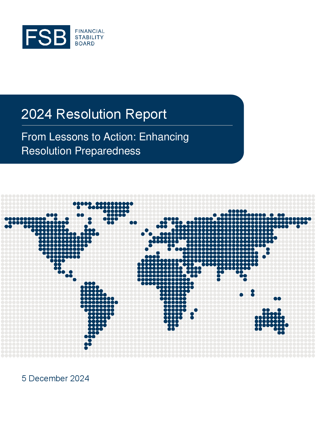 The Financial Stability Board (FSB) today published its 2024 Resolution Report. The report takes stock of the FSB resolution-related work of the past year as well as of the progress made by FSB members in implementing resolution reforms and enhancing resolvability across the banking, financial market infrastructure, and insurance sectors. It also sets out the FSB’s 2025 priorities in the resolution area.