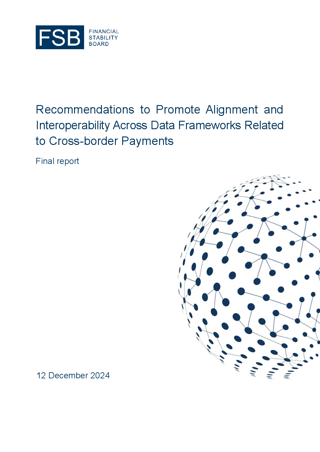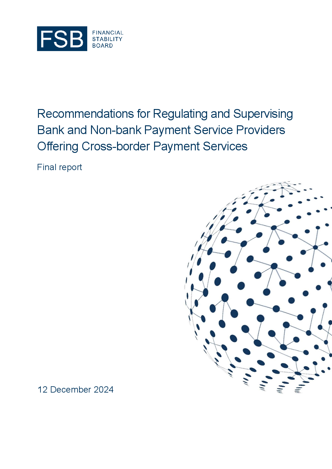 The Financial Stability Board (FSB) published today its finalised recommendations to promote greater alignment in data frameworks related to cross-border payments and consistency in the regulation and supervision of bank and non-bank payment service providers. These recommendations advance key actions from the G20 Roadmap to address legal, supervisory, and regulatory issues in cross-border payments. As part of these efforts and to enhance private sector engagement, the FSB is inviting market stakeholders in cross-border payments to join its Taskforce on Legal, Regulatory, and Supervisory matters (LRS Taskforce).
