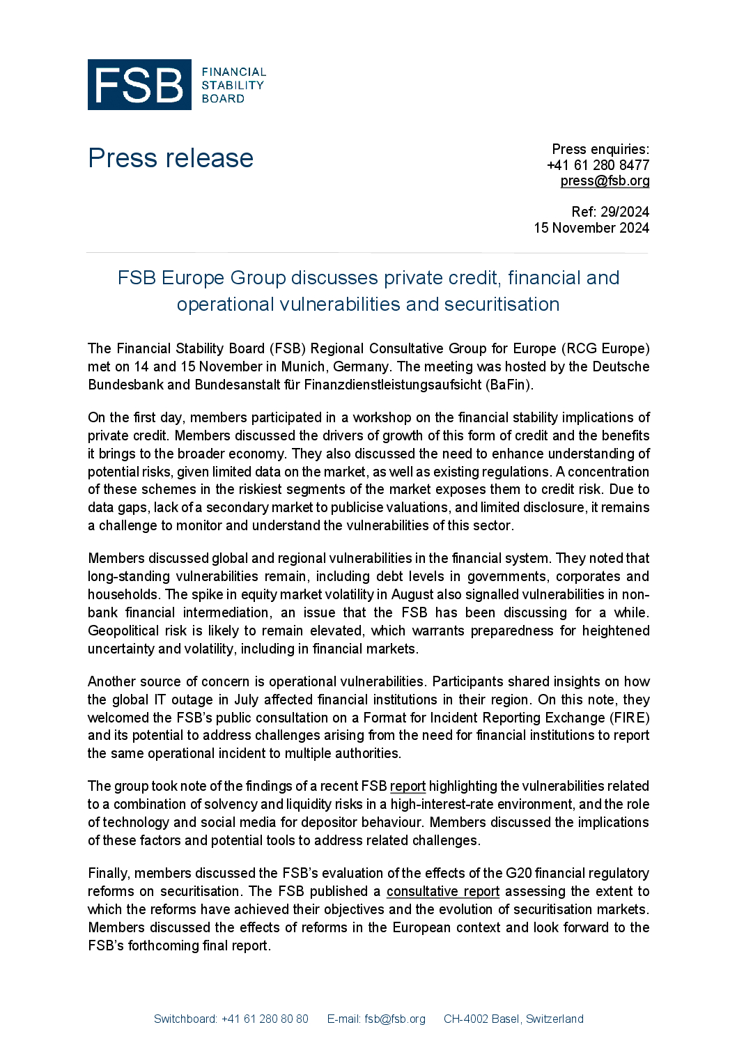Members discussed global financial vulnerabilities; progress on the G20 Roadmap on cross-border payments; and developments in – and approaches to monitoring potential financial stability risks – in the non-bank financial intermediation sector.