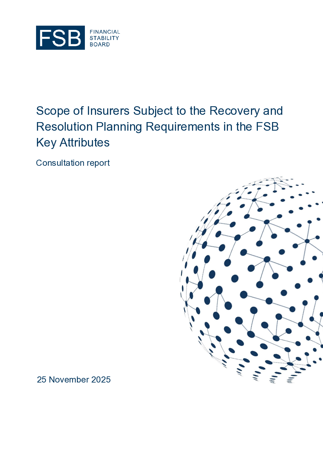 - The FSB is also consulting on guidance on the scope of insurers that should be subject to recovery and resolution planning (RRP) requirements, to promote consistency in application across FSB member jurisdictions.