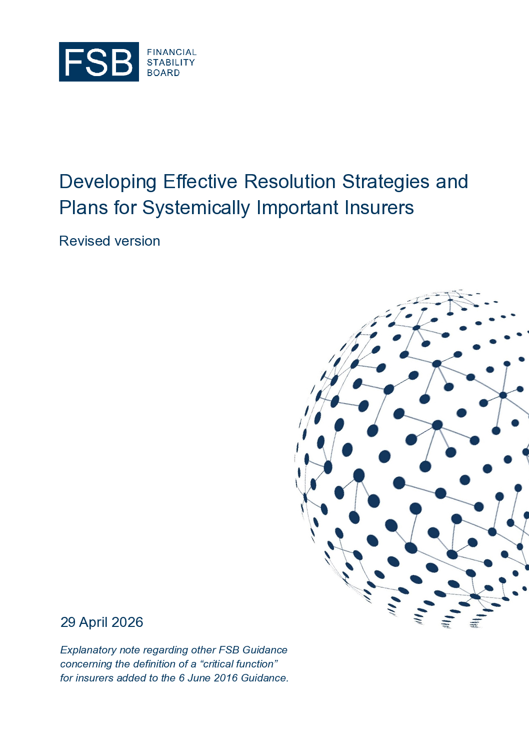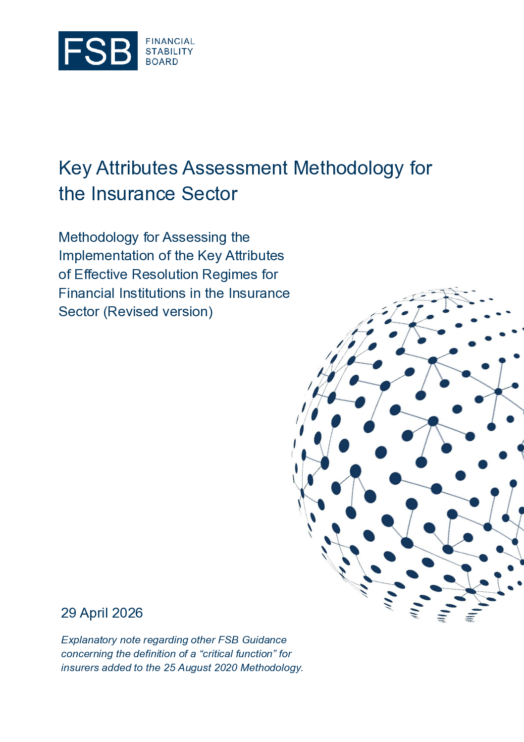 The Key Attributes of Effective Resolution Regimes for Financial Institutions set out the core elements that the FSB considers to be necessary for an effective resolution regime. Their application should allow authorities to resolve financial institutions in an orderly manner without exposing taxpayers to loss from solvency support and maintain continuity of financial institutions’ vital economic functions. The identification of these critical functions is therefore a core part of resolution planning and is often conducted as one of the first steps to build the basis for further resolution planning decisions.